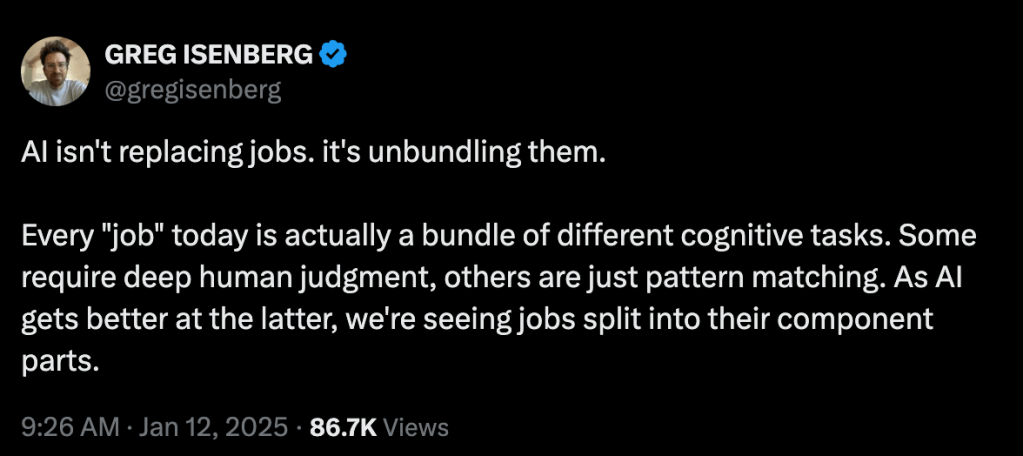 Other takes on job unbundling? What are you seeing? Hit me up on X.